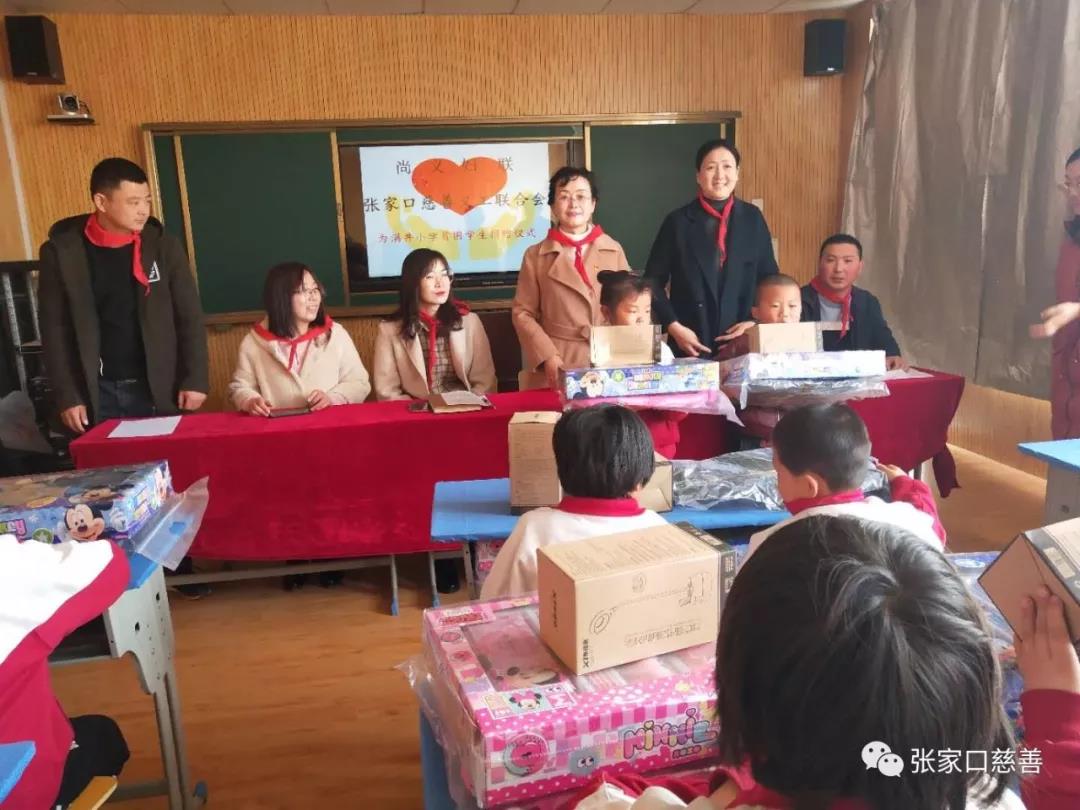 2019年4月12日,张世英、乔伯芳、宋杰三位爱心人士联合张家口慈善义工联合会为满井小学家庭贫困学生购买了学习用品,由尚义县妇女联合会和张家口慈善义工联合会联合主办为满井小学贫困学生捐赠仪式。尚义县妇女联合会主席王艳明,副主席李红艳,满井镇人大副主席程志燕(满井镇妇联主席)出席捐赠仪式。满井小学贾连荣校长致欢迎词,代表全校师生表达了对县妇女联合会和张家口慈善义工联合会的爱心善举的欢迎与感谢!