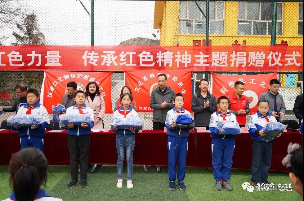 四月春风,和煦拂面,在2019年4月11日下午,我们利他义工之家16名志愿者参加了由张家口慈善义工联合会在桥西区永丰堡小学隆重举行了“凝聚红色力量 传承红色精神主题捐赠仪式”。活动中向桥西区永丰堡小学、东窑子小学、南天门小学、苏家桥小学四所小学共计100名学生捐赠了由河北慈善联合基金会提供的“梦想口袋”,折合人民币28000元。出席此次活动的领导有:桥西区教育体育和科学技术局机关党委副书记、副局长温冠忠,全国团代表、张家口青联委员、张家口慈善义工联合会副秘书长臧沙沙,桥西区教育体育和科学技术局机关党委办主任何海洋,捐赠助学科张利鹏及志愿者代表,张家口慈善义工联合会文化发展专委会会长苏景,光之爱、文物保护义工队义工志愿者等参加了本次活动。