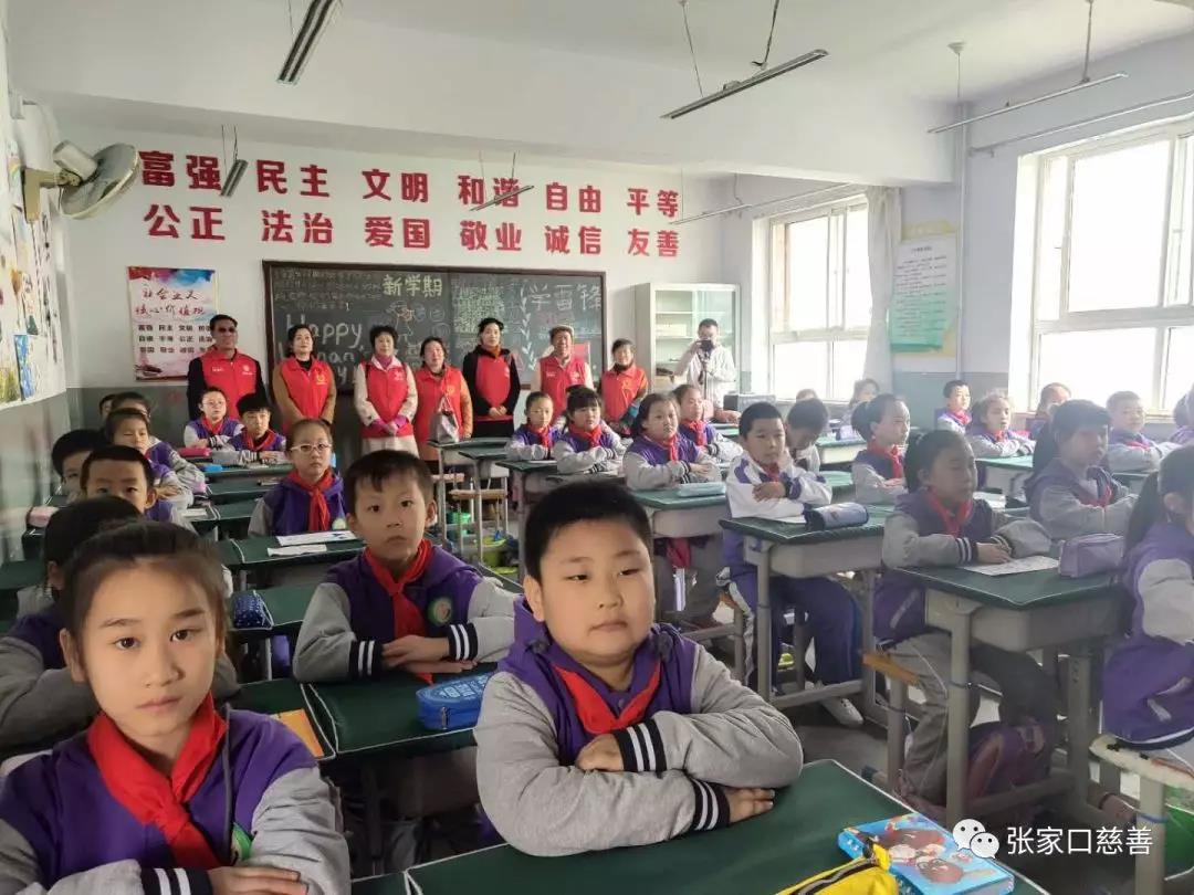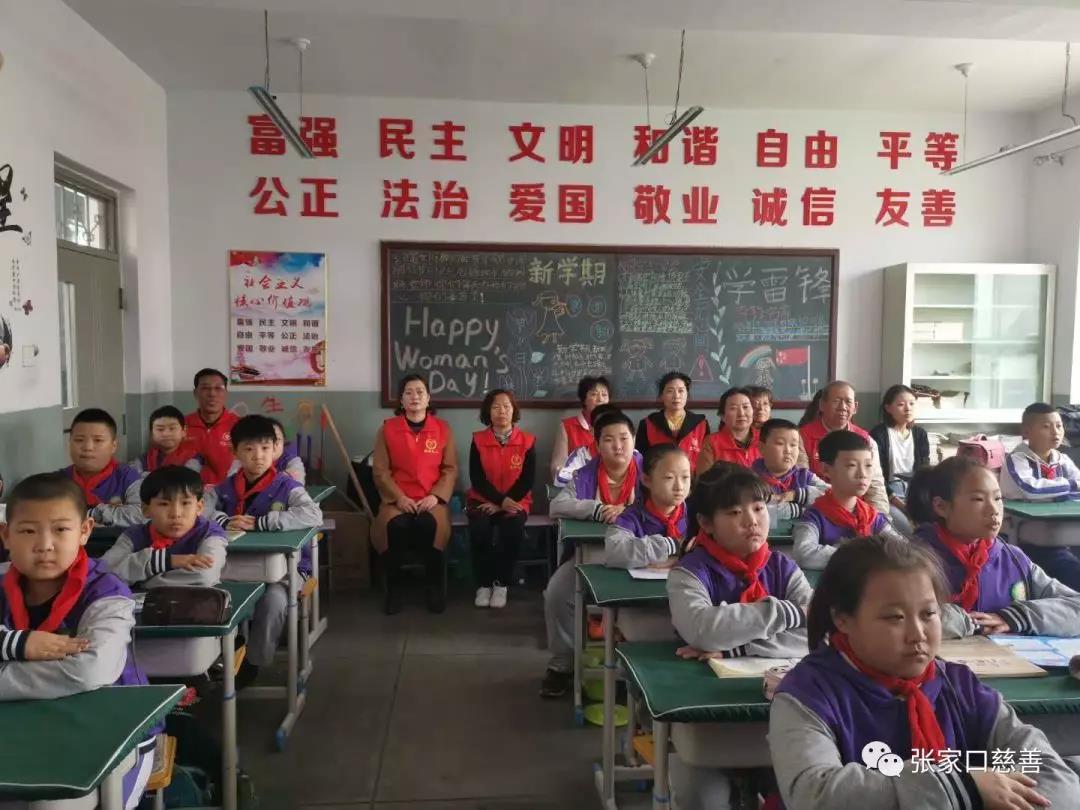 4月10日下午利他义工之家的8位志愿者与张家口电视台《张家口2022》栏目组工作人员,排着整齐的队伍从利他义工之家来到新华小学。