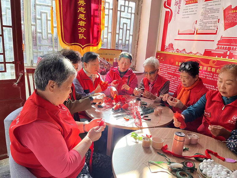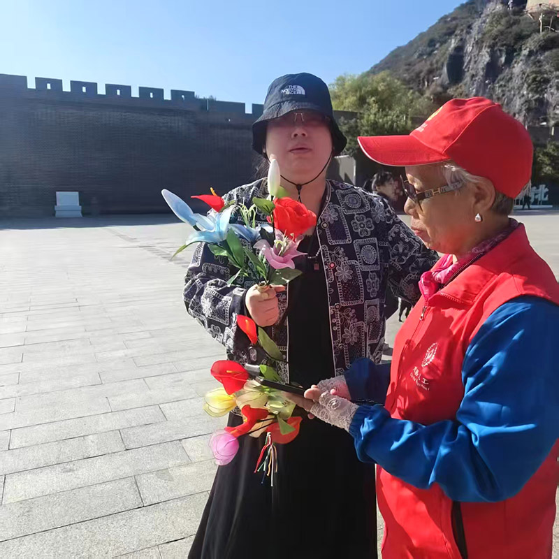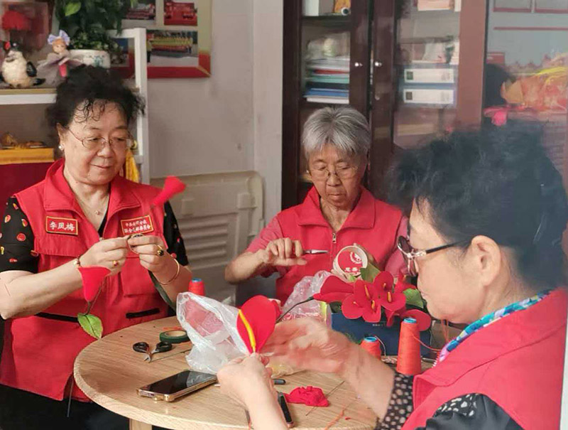 答: 这个志愿服务项目,最初是朋友介绍我参加的。她知道我擅长做丝网花,当时她所在的义工队正需要教学资源,就邀请我去教大家。加入那天,团队领导和我深入聊了做义工的意义,我被深深打动,心想这么大年纪了还能为社会做点事,于是毫不犹豫加入,希望通过手艺帮助他人。这成为我投身公益的起点。