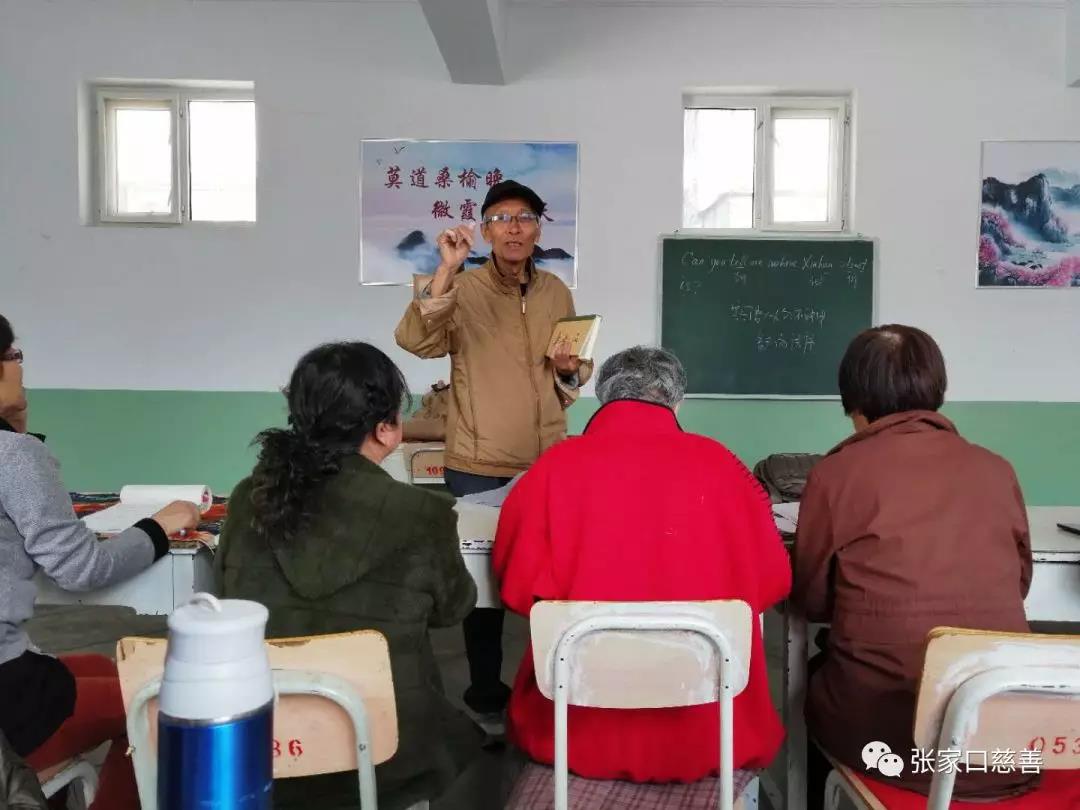 冬奥英语老年志愿服务队英语培训班在惠安苑社区进行 2019年4月8日上午,张家口慈善义工联合会冬奥英语老年志愿服务队英语培训班在惠安苑社区进行第54次活动。任立军老师和侯宝存老师主持,侯宝存讲授内容《英语口语问路》,任立军老师讲授《空姐服务》用语。效果非常好。