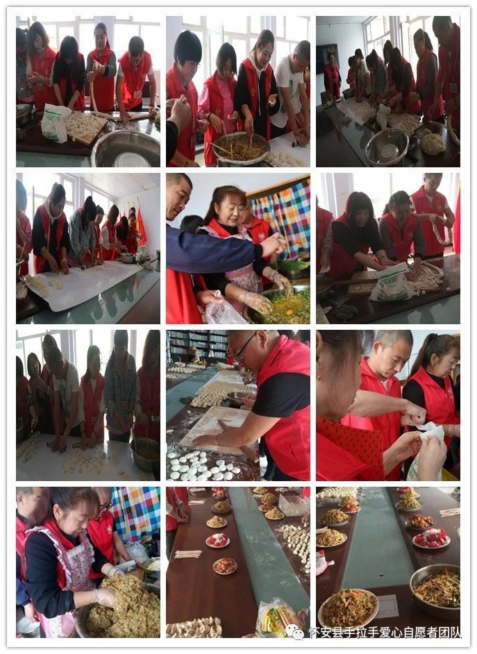 团队另一位资深成员梁子出资500元购买肉、菜等,大家齐心协力为工人们包了饺子,准备了丰盛的午餐。