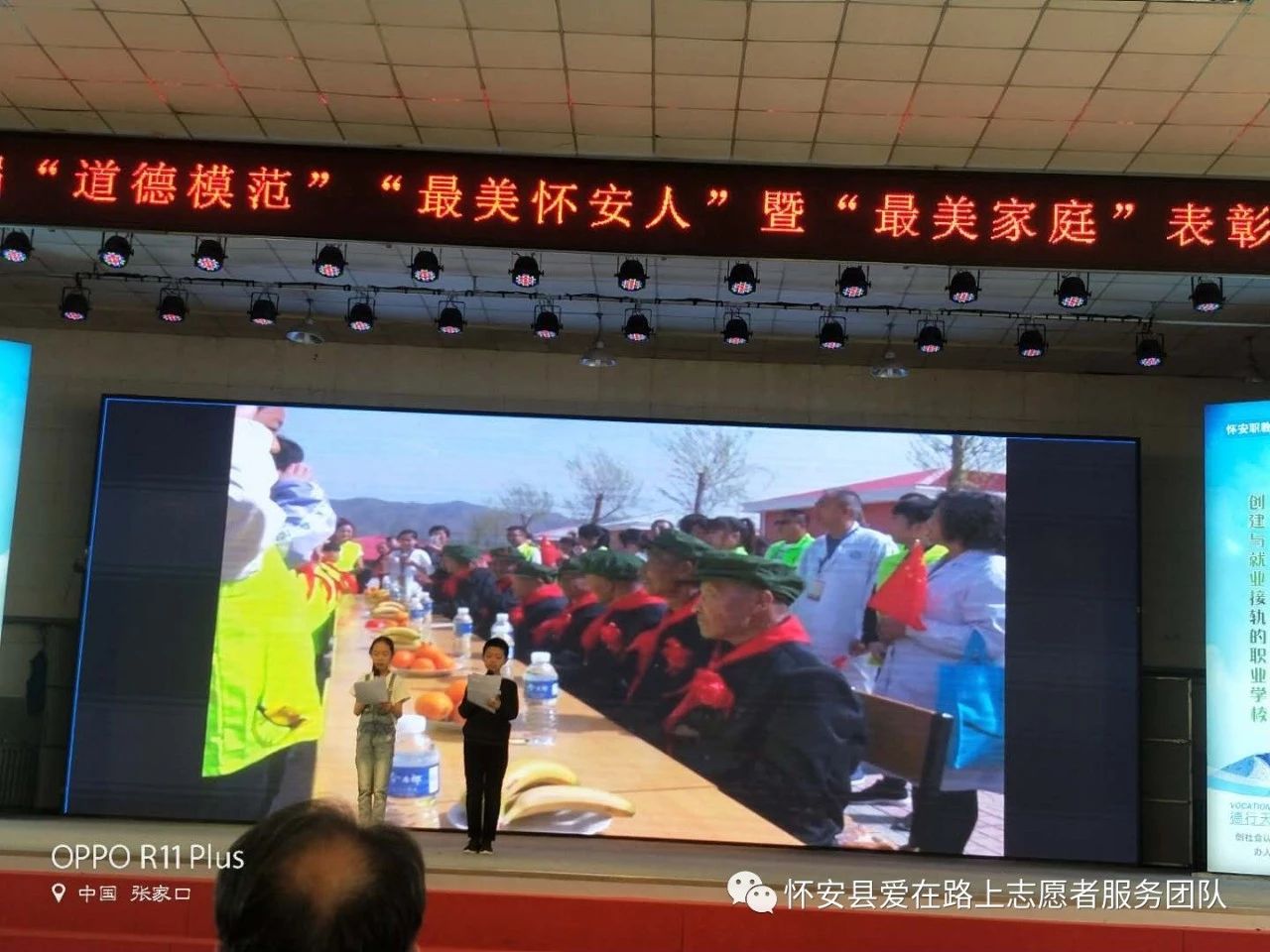 “ 怀安县爱在路上志愿者服务团队,因为他们是热心公益、彰显时代正能量的,助人为乐模范团队。”(晚会颁奖词)