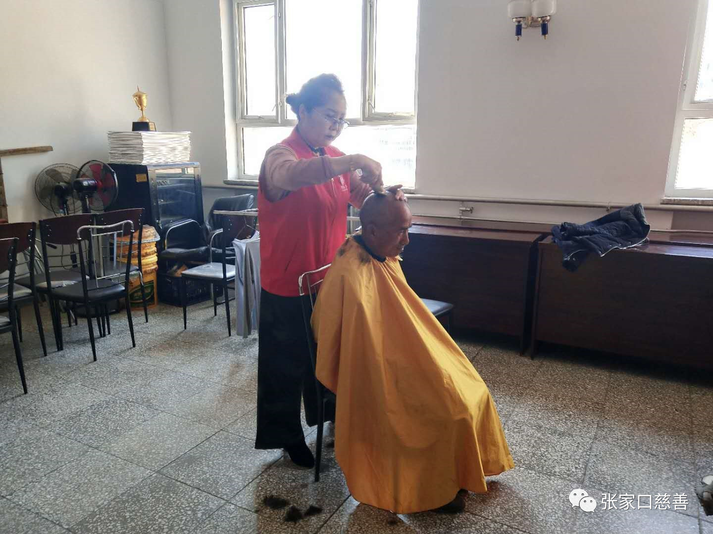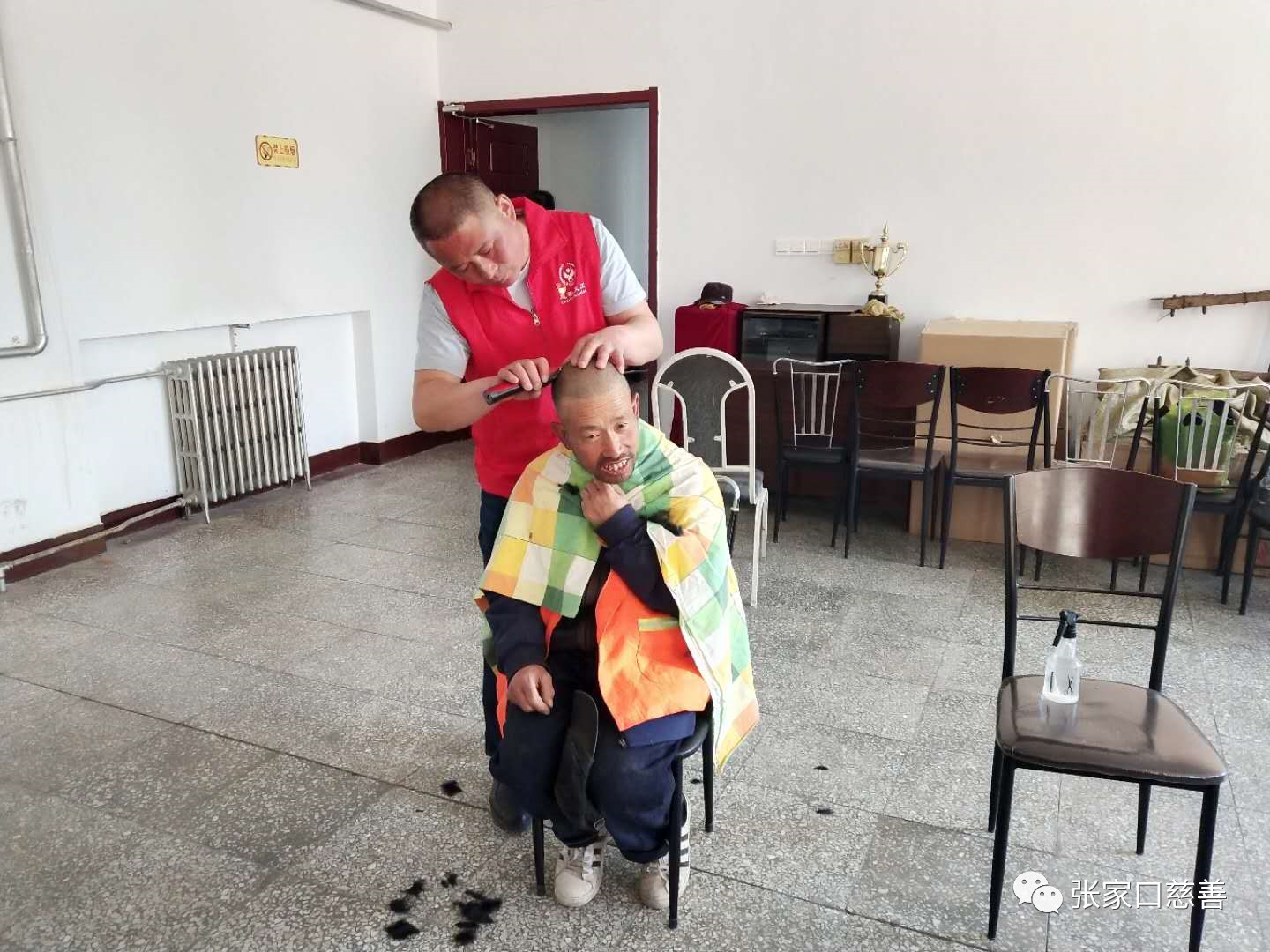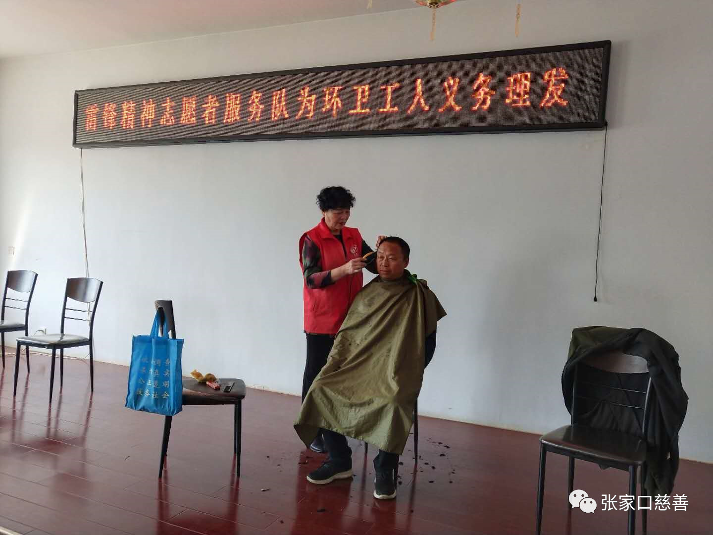 “五月一日”是劳动者的节日!有这么一群人,他们迎来最早一抹晨曦,送走最后一片晚霞,舍得一身脏,换来万家净。他们是我们城市的美容师,始终为我们的城市奉献着自己。这就是受人尊敬的环卫工人。为了感谢他们的无私付出,让人们都能认识到环卫工人的默默奉献,为了让更多的人都学会感恩、学会付出、学会关注身边的默默无闻却一直奉献付出的人群。我们雷锋精神志愿者服务队于2019年5月2日 早上9点30分前往桥西环卫处二楼会议室,为等候在那里的环卫工人师傅们进行了义务理发活动。