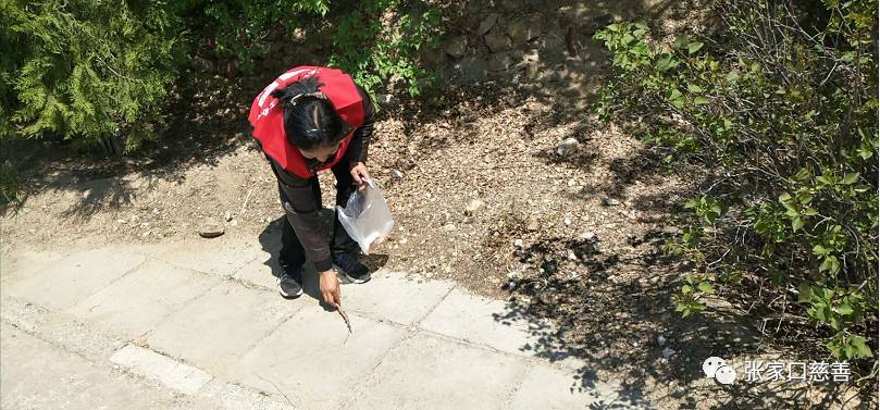 我们在结束了义务理发活动后为了响应北京市慈善义工联合会发起的“迎五一——节日零垃圾”活动我们大家没有来得及休息也没有喝水直接奔赴到张家口市西太平山旅游风景区。在那里举行了捡拾景区垃圾的活动。我们雷锋队的队员们自带一次性手套、塑料袋、等各种工具,对烟蒂、塑料袋和枯树枝等进行了清理。其中,一名8岁小队员和两名70多岁的老队员也参加了活动,志愿者方琴从山路边的绿化带中赤手捞出污泥中的垃圾……志愿者们的辛苦劳动,赢得了游客们的称赞,部分游客受到感染,也加入到了清理垃圾的行列中。