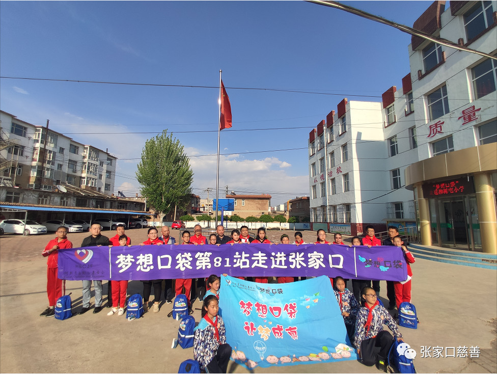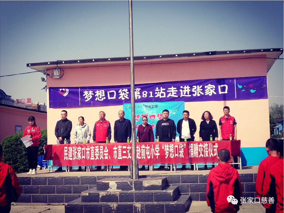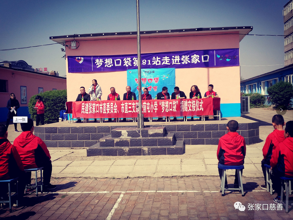 河北慈善联合基金会“梦想口袋”公益项目落地我市,由张家口慈善义工联合会对接该项目。2019年5月9日,由民建张家口市直委员会主办,由民建张家口市直三支部、张家口市经开区慈善义工联合会承办,由河北慈善联合基金会、张家口慈善义工联合会支持的帮扶贫困生和留守儿童活动暨梦想口袋发放活动,在张家口市前屯小学和柳树屯小学两所学校展开,此次捐赠活动共计发放梦想口袋38套,此次捐赠活动价值一万多元,感谢河北慈善联合基金会提供的梦想口袋。参加捐赠仪式的领导有:市民建市直总支主委赵曙升,市民建市直总支副主委、三支部主委、市慈善义工联双工发展专委会会长张喜梅,刘桂荣,李云飞,孟富,于宽;经开区慈善义工联合会党支部书记冀桂宝,市慈善义工联双工发展专委会秘书长贾晓卉,前屯小学李瑞珍校长,柳树屯小学张民校长以及学校全体师生共计600多人。