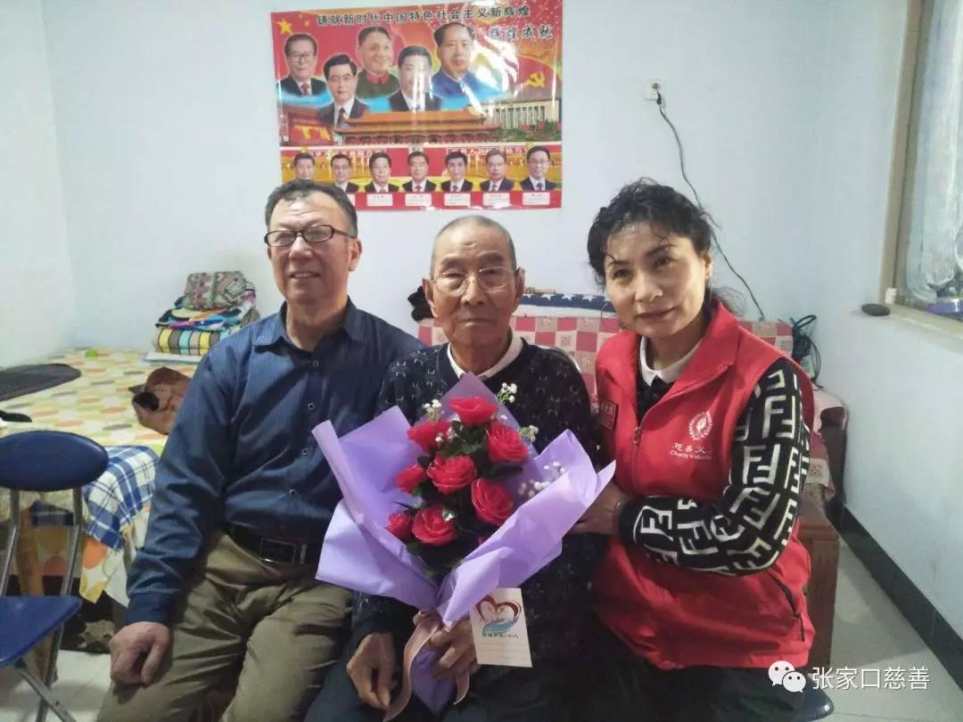 2019年4月28日,阳光行关注历史志愿者团队,在执行会长冀桂宝的带领下,张和平、杨顺、乔金叶、乔玉香、李蓉萍一行六人驱车前往宣化区庙底街,看望功勋老兵王忠魁老人。志愿者们为王老带去了鲜花、米、油和慰问金,并送上了深深的祝福与敬意。