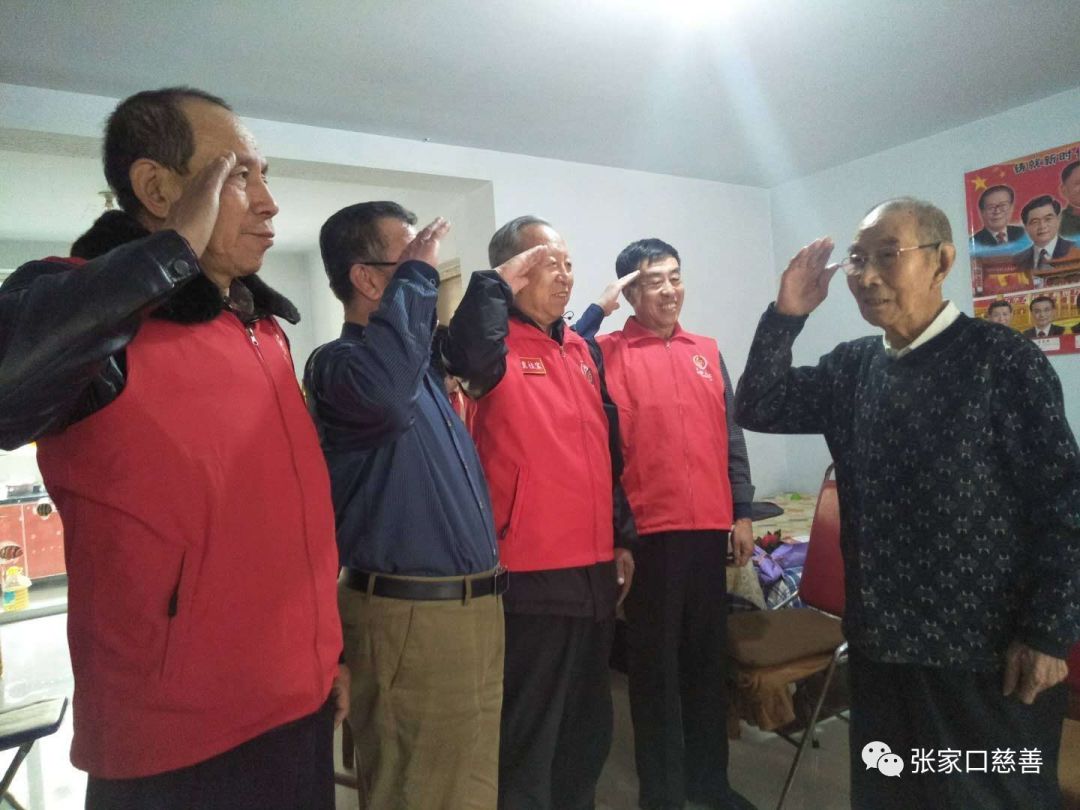 / /// 团队的冀桂宝书记问王老为啥要当兵,王老激动、坚毅的说“为了解放劳苦大众,为了保卫我们的祖国,”王老还为我们唱起了《志愿军之歌》,他那铿锵有力的歌声震撼着我们每一个志愿者。大家的眼睛湿润了,志愿者们紧紧抓着王老的手,希望他开心、幸福。志愿者们不会忘记保家卫国的功臣!向英雄致敬!