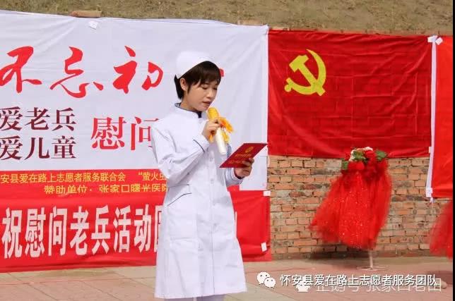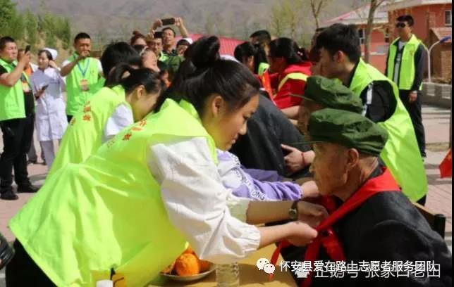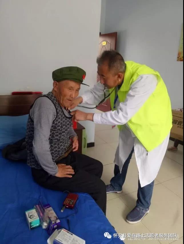 怀安县爱在路上志愿者团队,志愿者医疗分队为老英雄进行体检,让英雄们有个健康的身体