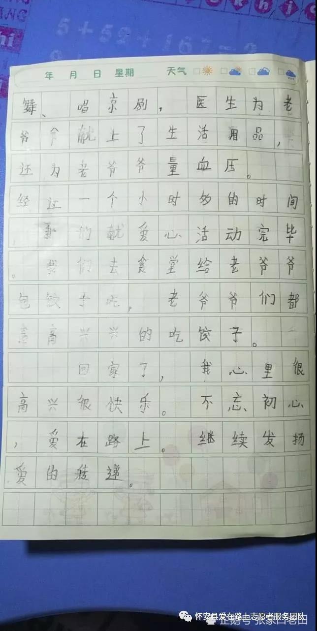 怀安县爱在路上志愿者团队资助的两名贫困家庭的孩子,让他们能完成学业,志愿者们进行了助学小组,志愿者们的这份爱心,让孩子更加努力学习,其中就在这次月考,资助的孩子获得了初中全年级第二名;为了感恩志愿者的资助,孩子为志愿者们赠送锦旗给志愿者团队;