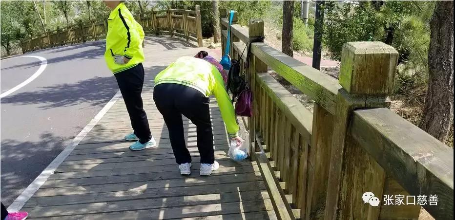 我们没有登上顶峰的14位志愿者,跟随郭卫兵总队长、王志宏部长、李秀英副队长,一路走一路捡拾着路边的果皮、纸屑、烟头、水瓶等地面上的垃圾。