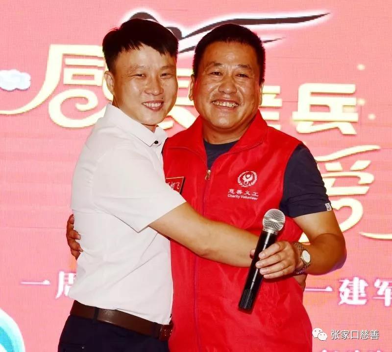 联欢会现场,爱心企业家,金六福酒业张家口总代理李君良,是东北辽宁人,从小就听老人们讲述东三省白山黑水十四年艰苦卓绝的抗战故事,慰问功勋老兵的活动深深的感动了这位年轻的CEO,李总现场为团队捐赠人民币5000元,用于日后慰问功勋老兵物品的采购费用,并表示将赞助以后慰问活动的所有慰问品,同时,每卖出一瓶一坛好酒,就再捐出一元钱作为团队活动经费。此举也感动了在场的所有人,义工联的夏栩飞副会长,也是一名爱心企业家,为对爱心企业家李君良的支持,当场购买了一万元的酒品,感谢金六福酒业企业家对公益事业的慷慨捐助。与会的网易新闻、义工之声、长城网、好人中国网、北京晚报等多家媒体将对此次活动予以报道,大家将携手共进,将慰问功勋老兵公益活动传承!传递!弘扬!将公益之花绽放,在公益之路同行!联欢会特别邀请的4位功勋老兵代表与大家欢聚一堂,共庆建军91周年。联欢活动在欢乐、祥和的文艺演出中结束。(通讯员:安咏梅,审核人:赵小军