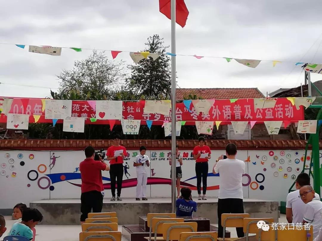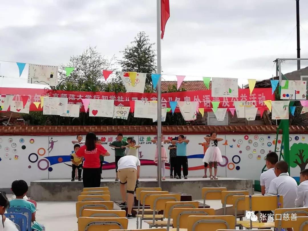 来自北京师范大学的支教小分队尤梦婷一行人于2018年7月25日清晨在张家口市宣化区马圈小学举行隆重的夏令营结业仪式,此次夏令营的主题是“迎冬奥英语普及公益教育”,结业仪式出场嘉宾有宣化区教育局负责人,张家口市电视台负责人,张家口市慈善义工联合会代表以及马圈小学校领导。该仪式从上午九点半开始,到中午十一点结束,共进行了包括文艺汇演展示,颁奖典礼,校长致辞等环节。在各方面人员的辛勤努力下,结业仪式顺利举办,取得圆满的成功!