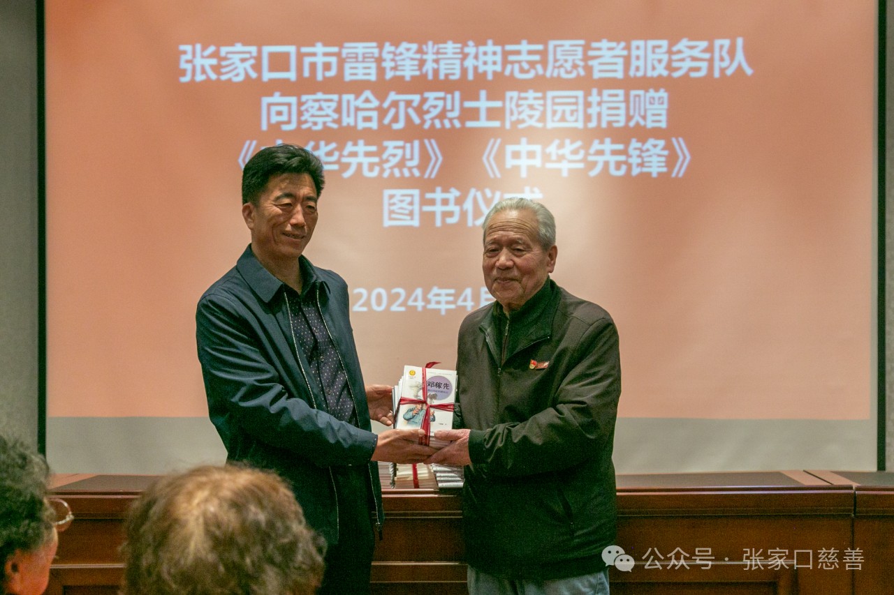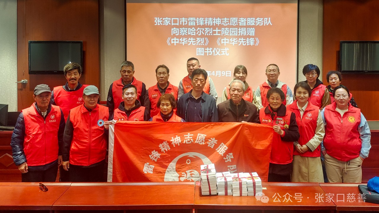 4月9日上午九点,桥东慈善义工联合会雷锋精神志愿者服务队名誉队长赵柱国和党支部书记樊志勇一行16人携书到张家口察哈尔烈士陵园管理处,为察哈尔烈士陵园捐赠红色图书。本次捐赠书记包括《中华先烈》和《中华先锋》两个系列,共计100本。 ![]()