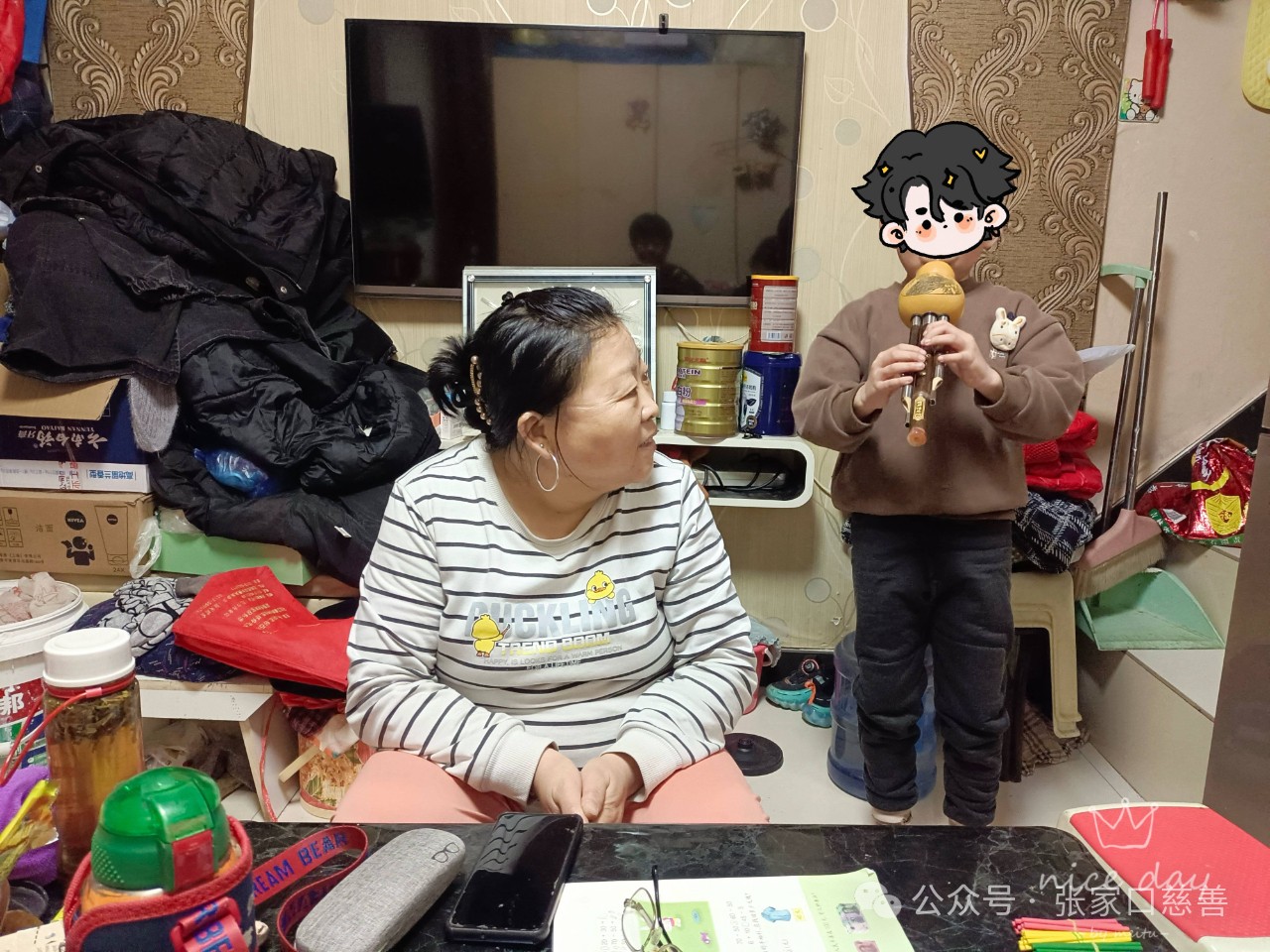 随后志愿者又先后来到李同学和张同学家中。张同学父亲患有直肠癌,一直在做化疗,母亲为了照顾父亲只能接一些手工串珠的工作,平时还要接送孩子上下学,家庭开支全靠亲戚朋友救济,生活比较困难。孩子很懂事,还主动给志愿者们吹奏了一段葫芦丝。看着孩子,志愿者们不禁湿了眼眶。“大姐,家家有本难念的经,您还这么乐观真是敬佩您”志愿者杨艳姣问孩子妈妈。“是,各家有各家的难,我已经习惯了,就是希望孩子能考上大学,过上更好的生活,我就非常开心了!”孩子妈妈满眼爱意的看着孩子。