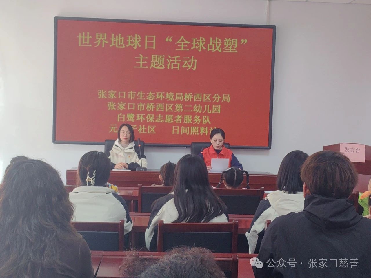 为全面贯彻落实习近平总书记关于塑料污染治理的重要指示批示精神,积极践行生态文明理念,有力有序有效治理塑料污染。2024年4月17日上午,在第55个世界地球日来临之际,白鹭环保志愿者服务队联合张家口市生态环境局桥西区分局、桥西区第二幼儿园在元台子社区组织开展“全球战塑”、“珍爱地球 人与自然和谐共生”主题宣传活动。引导公众树立生态文明理念,积极参与到保护生态环境志愿服务当中。 本次活动由元台子社区工作人员主持,首先由桥西区生态环境分局工作人员为大家详细讲解了世界地球日的由来、面对极端天气国家采取的一系列应对措施以及保护生态环境的意义等知识,动员大家从我做起,从身边的小事做起,节约用水、用电、用气,减少使用一次性餐具用品,倡导绿色低碳的出行方式,爱护生态环境,真正实现人与自然和谐共生。