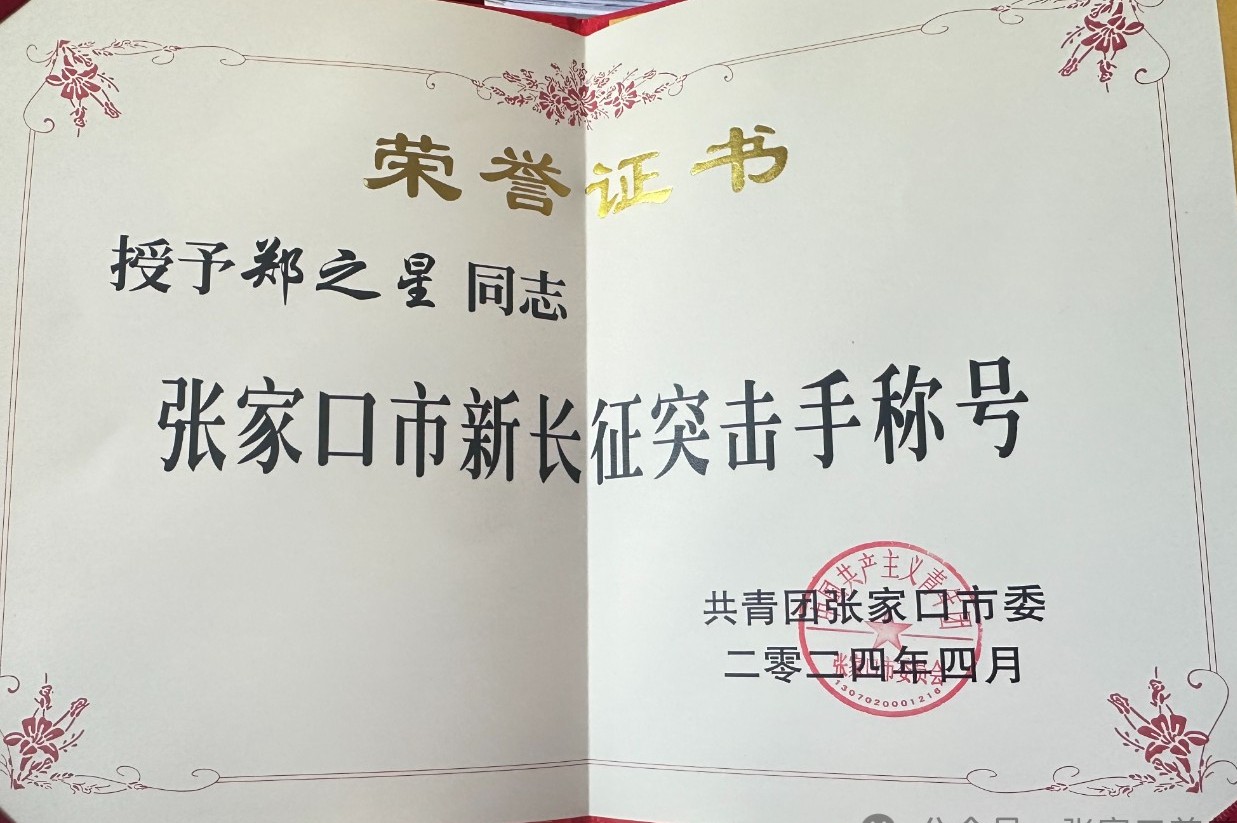 【喜报】恭喜张泽婷、郑之星两名同志荣获张家口市新长征突击手称号
