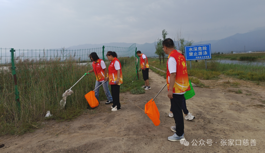 古老的桑干河宛如一条白色的银带静静地流淌着,她是首都北京人民吃水用水的重要来源。然而,河岸上的垃圾却破坏了这份自然之美,为了倡导文明,净化河水,2023年5月,阳慈联启动了“清洁桑干河水,服务首都北京”环保计划,已经组织清洁活动22场,参加志愿者达110多人次。今天,志愿者们身着新马甲,犹如一团团燃烧的火焰,为这阴沉的天气带来了一抹亮色。他们手持垃圾袋、夹子等工具,仔细地清理着河岸上的每一处垃圾及河中的死鱼。