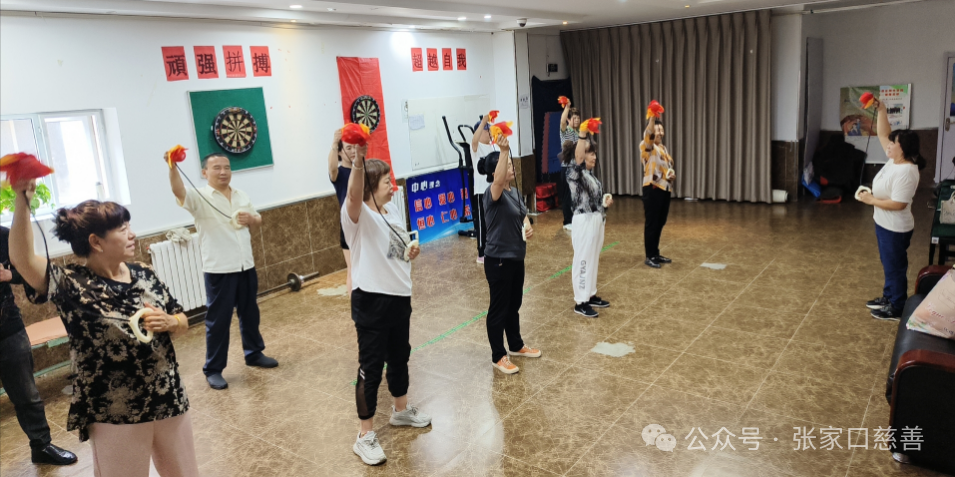只见大家手持健身球,在霍老师的带领下,一边学一边跳。通过反复练习,大家的动作也越来越熟练,越来越整齐。一颗小小的健身球,在他们身边自由飞绕,甩出去的是烦恼,收获的是健康和快乐。对于部分学员来说,他们听不到伴奏的声音,却仍然可以态度认真、精神饱满的完成每一次练习。他们的坚持和乐观,传递给大家的不仅仅是快乐,还有一份向阳生长的坚韧。